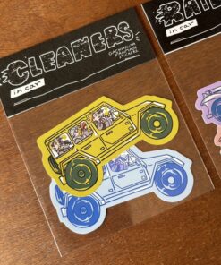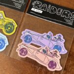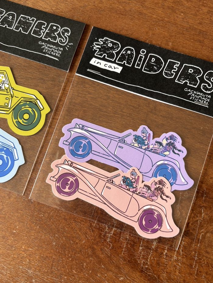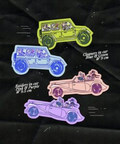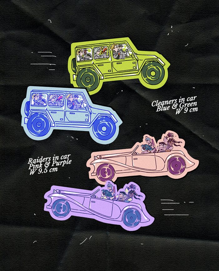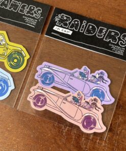 Raiders in car — Die-cut 100% | PP Matte White | Comes in a set of 2 pieces – Pink & Purple (W ~ 9.5 cm each)
