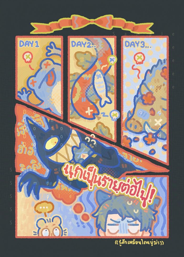 Nuttypine : ”เป็นการรวมเล่มกับนักวาดท่านอื่นครั้งแรกเลยค่ะ แล้วก็ดีใจที่ได้วาดด้อมนี้อีกครั้งด้วย ฝากเล่มนี้ไว้ในอ้อมอกอ้อมใจด้วยนะคะ!“