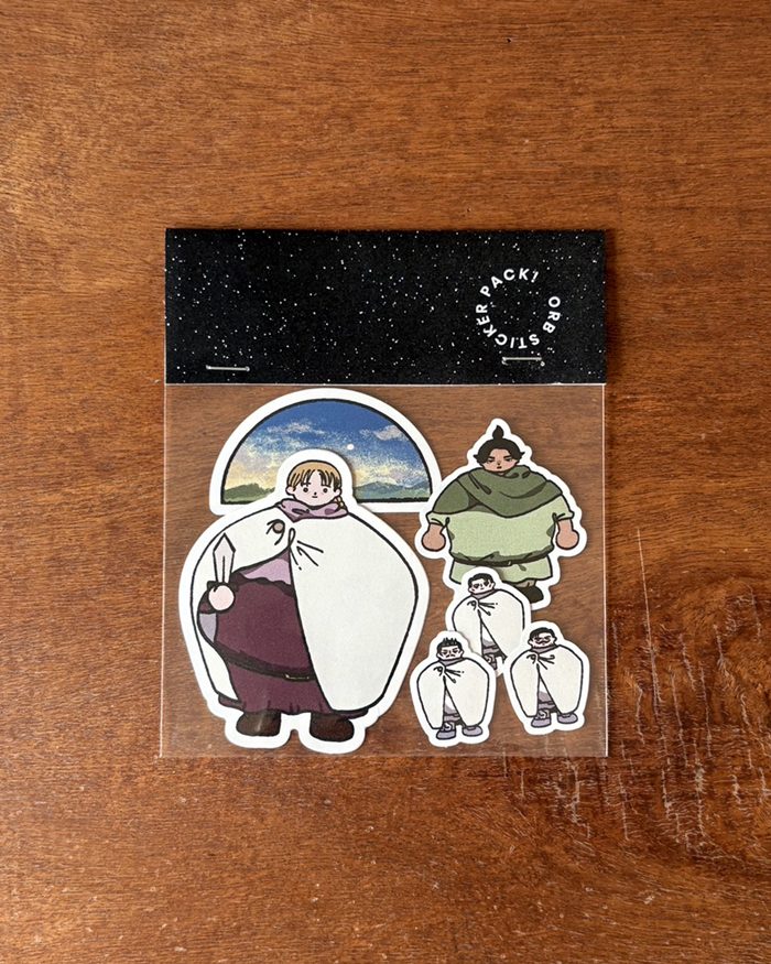 Set — 6 pieces of sticker including Jolenta, Draka, Half moon scenery, Schmidt, Frei, and Lewandowski from Orb: On the movement of the Earth (Chi) | Die-cut 100% | PP Matte White | 10.2 * 12.9 cm including the packaging