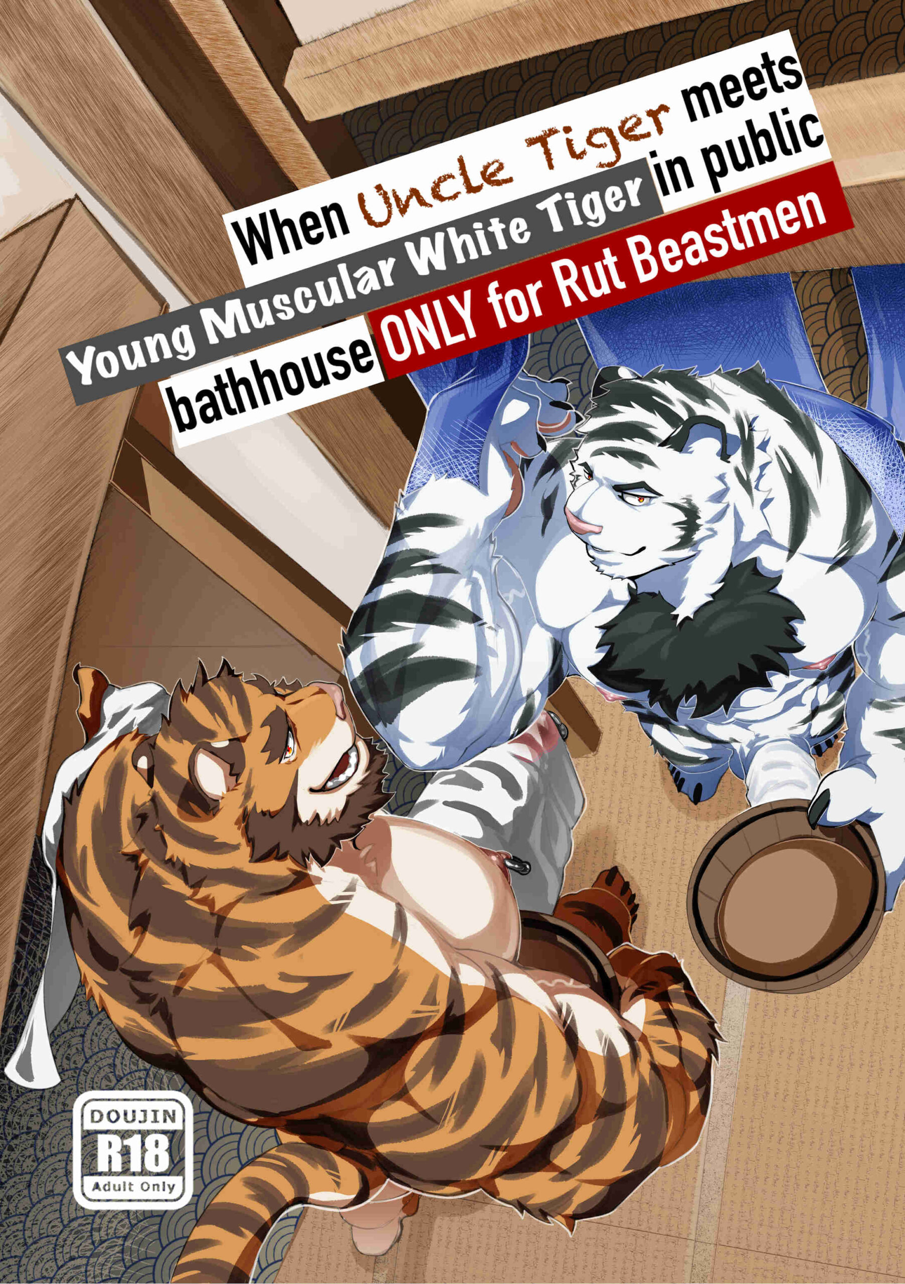 When Uncle Tiger meets Young Muscular White Tiger in public bathhouse Only for Rut Beastmen