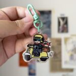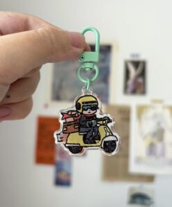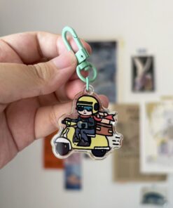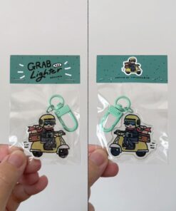 Delivery Lighter keychain — W ~ 4 cm | Two-sided UV printed on glossy transparent acrylic with teal-colored U-shaped hook clasp. No glitter on one side and with glitter on another side